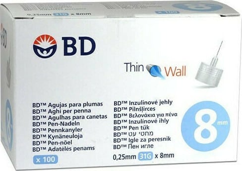 BD Thin Wall Βελονάκια για Πένα 0.25mm 31G x 8mm 100 τεμ