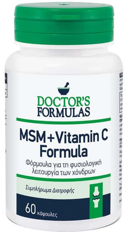 Συμπλήρωμα διατροφής Doctor’s Formulas MSM + Vitamin C 1000 Formula, Φόρμουλα Msm και Vitamin C για τον φυσικό σχηματισμό κολλαγόνου και τη φυσιολογική λειτουργία των χόνδρων.