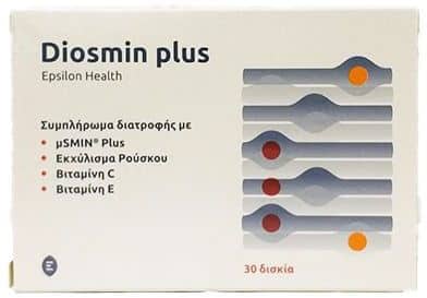 Συμπλήρωμα διατροφής Epsilon Health Diosmin Plus σε δισκία με ειδική σύνθεση που συμβάλλει στη διατήρηση της φυσιολογικής λειτουργίας των αιμοφόρων αγγείων .