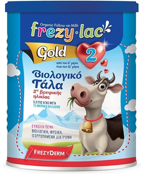 Frezyderm Gold 2, αγνό βιολογικό αγελαδινό γάλα σε σκόνη 2ης βρεφικής ηλικίας. Αποτελεί την ιδανική τροφή μετά τον θηλασμό για βρέφη από τον 6ο έως τον 12ο μήνα στο πλαίσιο μίας μεικτής διατροφής.