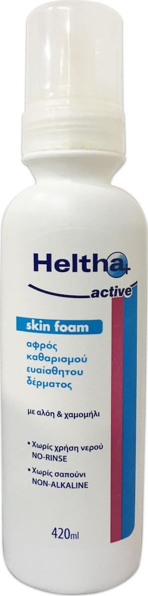Ο αφρός καθαρισμού Heltha+ Active Skin Foam καθαρίζει χωρίς νερό, δεν χρειάζεται ξέπλυμα.