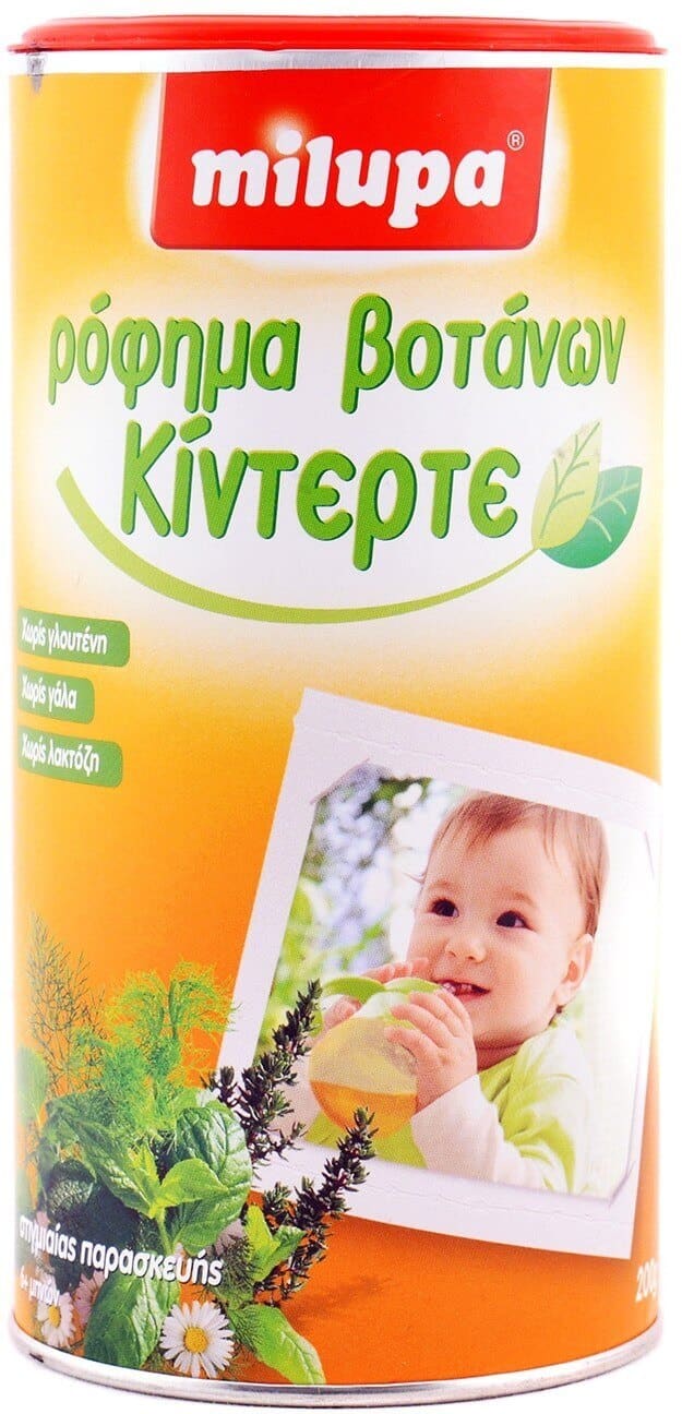 Ρόφημα βοτάνων Milupa Κίντερτε για μωρά από 6 μηνών. συνδυασμός βοτάνων με καταπραϋντικές ιδιότητες με εκχυλίσματα χαμομηλιού, βάλσαμου, μέντας, μάραθου, γλυκάνισου και θυμαριού για την ενυδάτωση του βρέφους ανάμεσα στα γεύματα