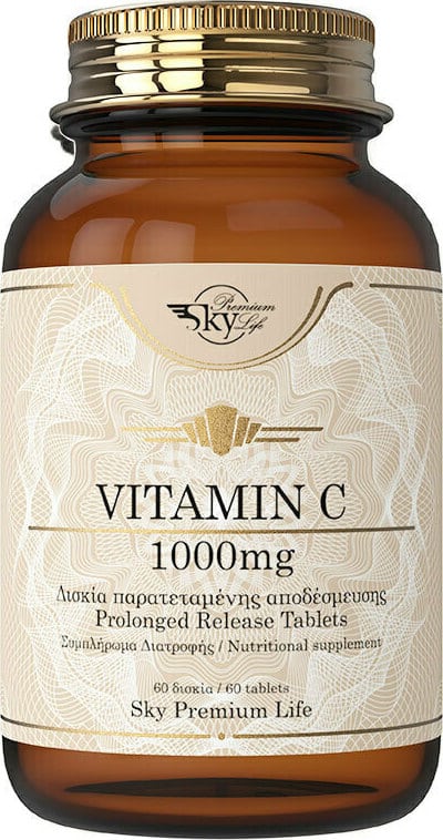 Συμπλήρωμα διατροφής Sky Premium Life Vitamin C 1000mg 60 ταμπλέτες κατάλληλο για άνδρες και γυναίκες.