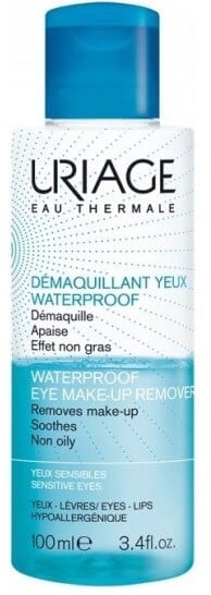 Λοσιόν ντεμακιγιάζ ματιών της Uriage, κατάλληλη για ευαίσθητη επιδερμίδα. Έχει διαυγή όψη και λεπτόρευστη υφή, βασιζόμενη στη σύστασή της που περιέχει περισσότερο νερό και λιγότερα έλαια, συγκριτικά με τις άλλες μορφές καλλυντικών. Διαθέτει αποτελεσματικότερη δράση που αφαιρεί ακόμη και τα υπολείμματα που αφήνει το αδιάβροχο μακιγιάζ στο δέρμα, αποτρέποντας το φράξιμο των πόρων και βοηθώντας το να αναπνεύσει καλύτερα. Ταυτόχρονα αποφεύγεται η πρόκληση φαγούρας, ερεθισμών, ερυθρότητας καθώς και διαφόρων άλλων δυσάρεστων για την επιδερμίδα συνεπειών.
