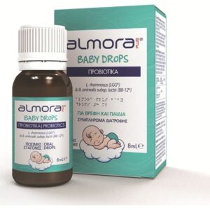 Συμπλήρωμα διατροφής Elpen Almora Plus Probiotics Baby Drops για την ανακούφιση των βρεφικών κολικών & την υγεία του γαστρεντερικού. Περιέχει στη σύνθεσή του τα 2 πιο μελετημένα προβιοτικά στελέχη παγκοσμίως : Lactobacillus rhamnosus (LGG®) και Bifidobacterium animalis subsp….